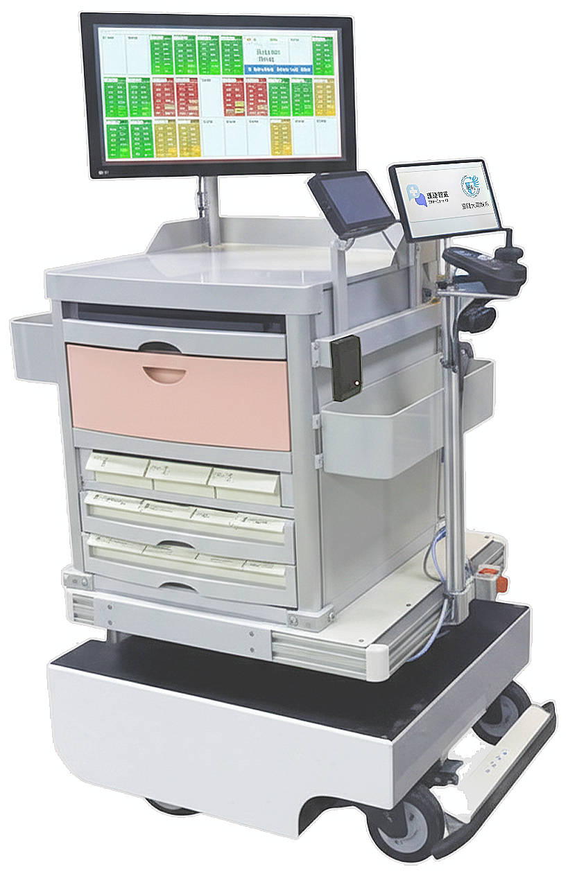 Powered by AMR technology, the NurseX smart nursing cart features advanced autonomous navigation and obstacle avoidance, automatically shuttling between wards, labs, and pharmacies for 24/7 delivery tasks.